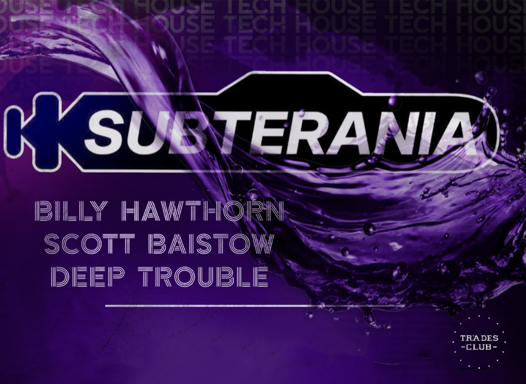 SUBTERANIA – a night of underground House music from local artists Billy Hawthorn, Scott Baistow and Deep Trouble.